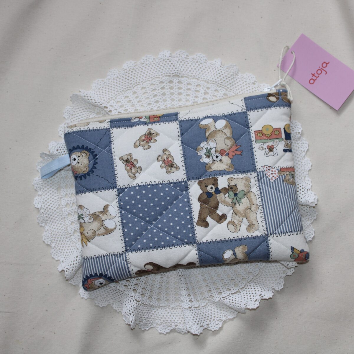 Pranie ręczne w letniej wodzie z dodatkiem delikatnych środków piorących. Delikatnie odciśnij z nadmiaru wody. Połóż wypraną rzecz na płasko na ręczniku lub suszarce, aby suszyła się naturalnie. Najlepiej wyjąć podszewkę na zewnątrz. Unikaj wystawiania kosmetyczki/ torby bezpośrednio na słońce, by kolory tkaniny nie straciły intensywności. Najlepiej prasować przez bawełnianą szmatkę, unikając bezpośredniego kontaktu żelazka z tkaniną.