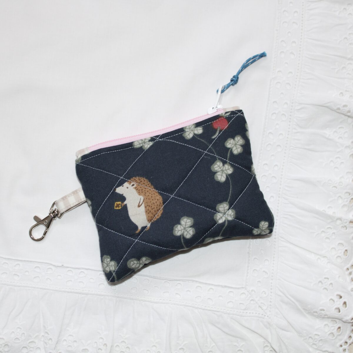 Upcyklingowa saszetka uszyta z tkanin z odzysku. Ten breloczek powstał z vintage pościeli. W środku podszewka z ortalionu z odzysku i metka atoja. Wszystkie zamówienia pakowane są w woreczki szyte z vintage tkanin. Ręcznie uszyta w Polsce. Wyjątkowy projekt zero waste. Breloczki powstają z totalnych resztek tkanin, które pozostają po szyciu większych produktów.